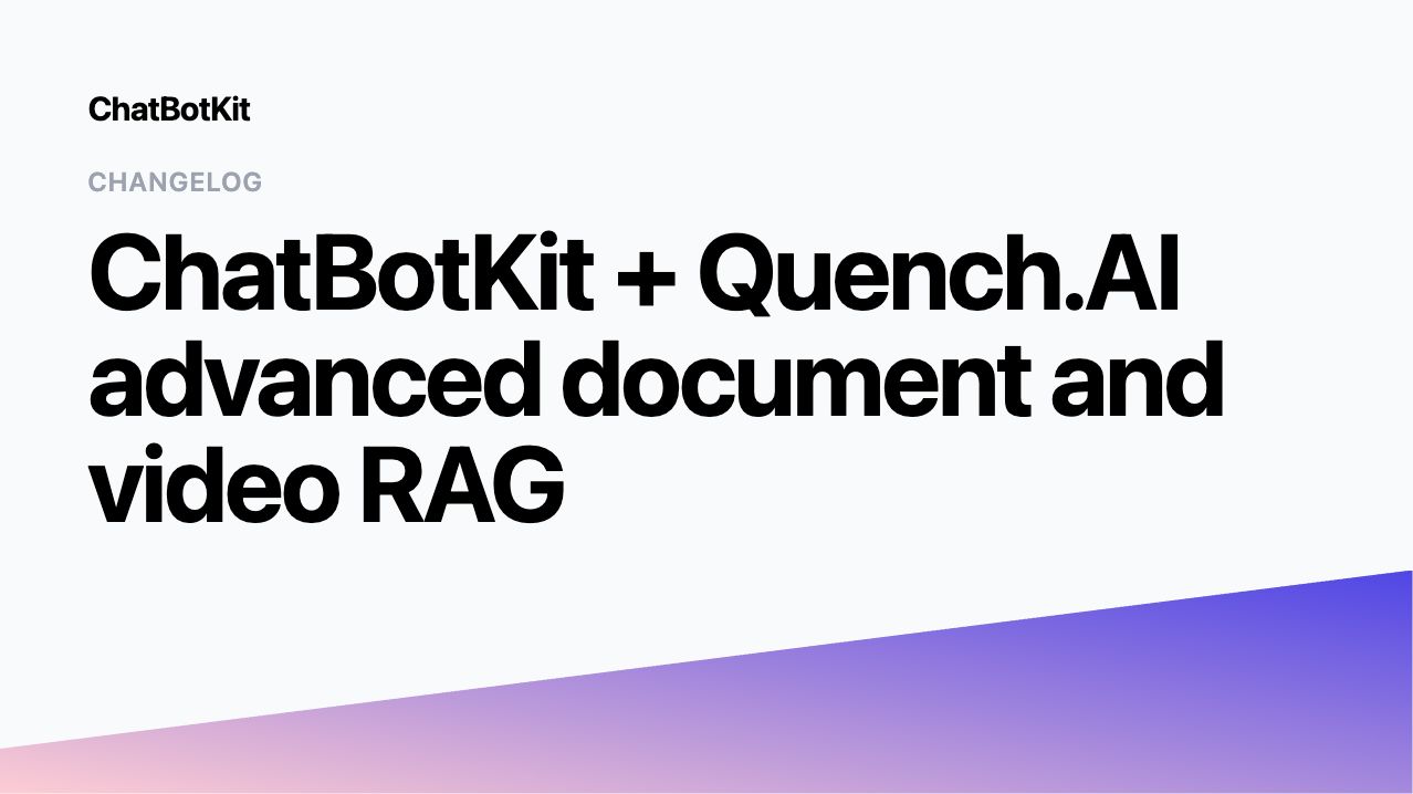 The new integration leverages ChatBotKit's robust platform for conversational AI bot development to connect with Quench.AI's advanced document and video processing capabilities. Users can now build intelligent agents that access and utilize comprehensive knowledge bases through an intuitive, streamlined workflow.