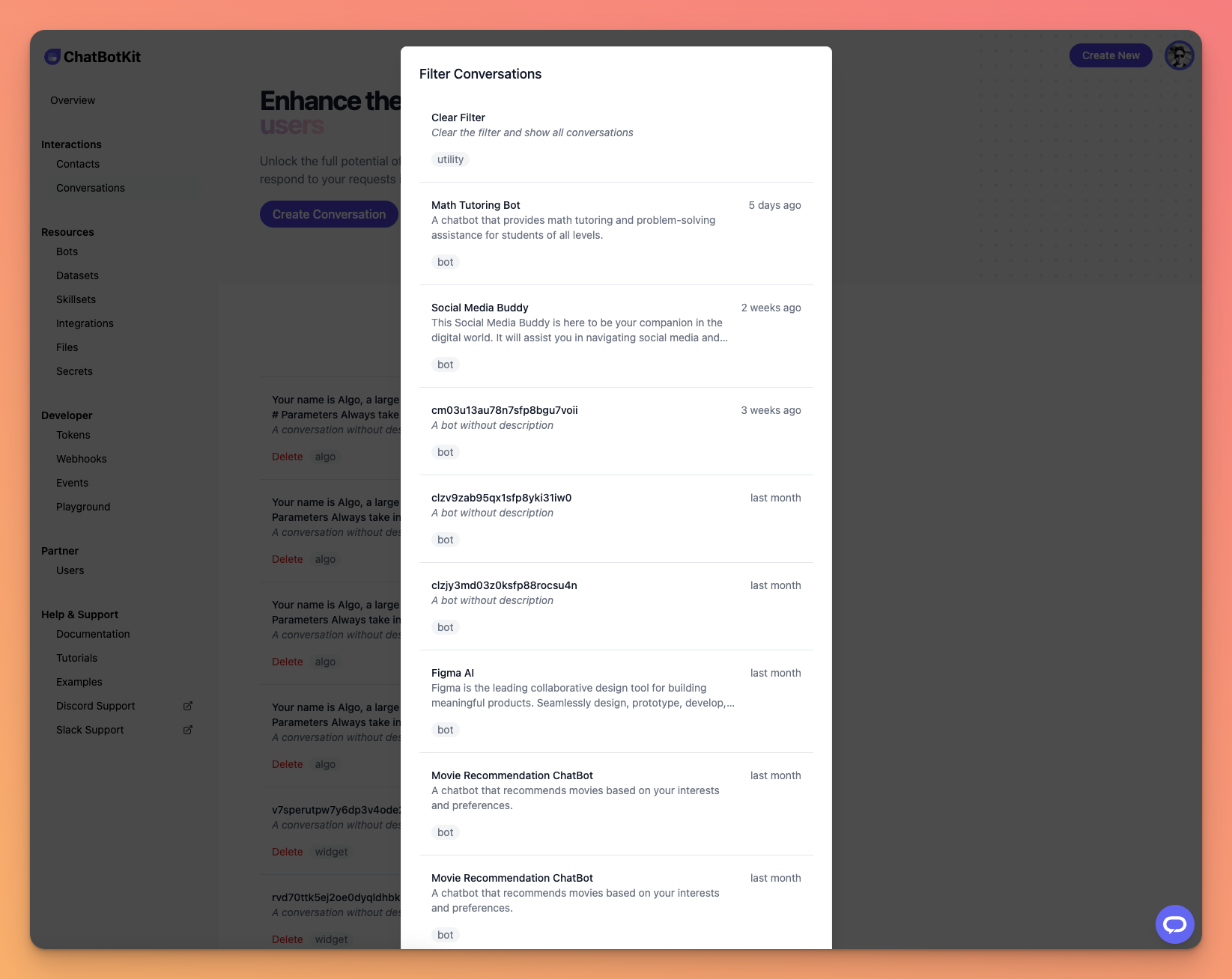 We are excited to announce the launch of a powerful new feature aimed at enhancing user experience - an advanced filtering option within the conversations section. This update empowers users to effortlessly navigate and explore conversations related to their specific AI bots.