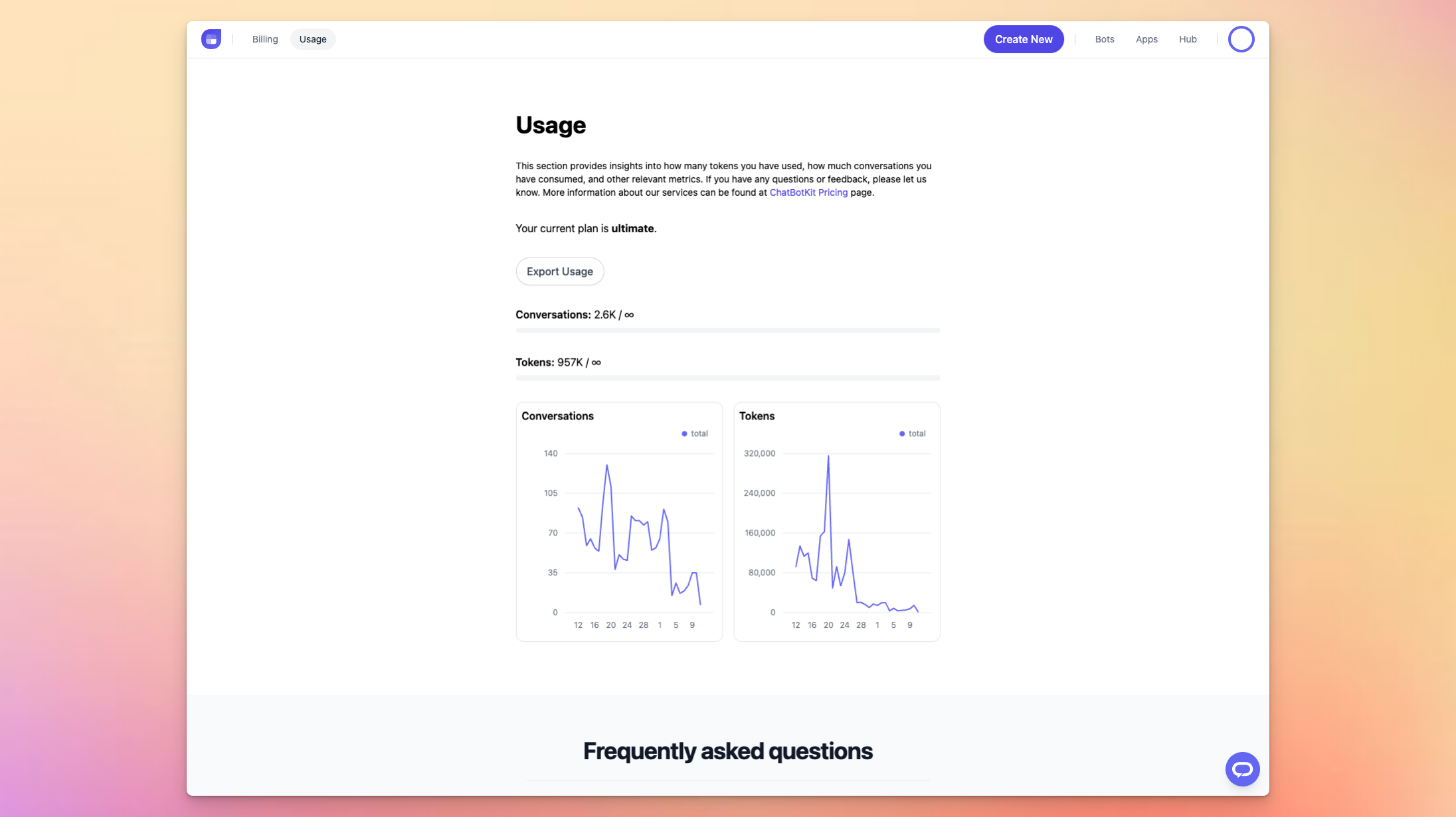 - Daily Usage Insights: Access detailed analytics on how many conversations and tokens are used each day, allowing for precise monitoring and planning.