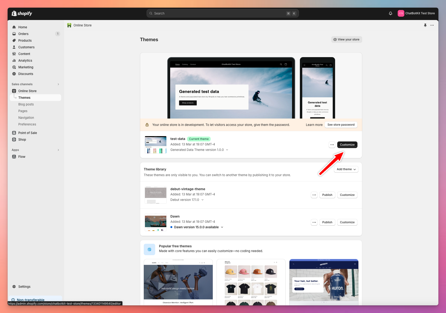 Go to “Online Store” and then “Themes” section of your Shopify store.