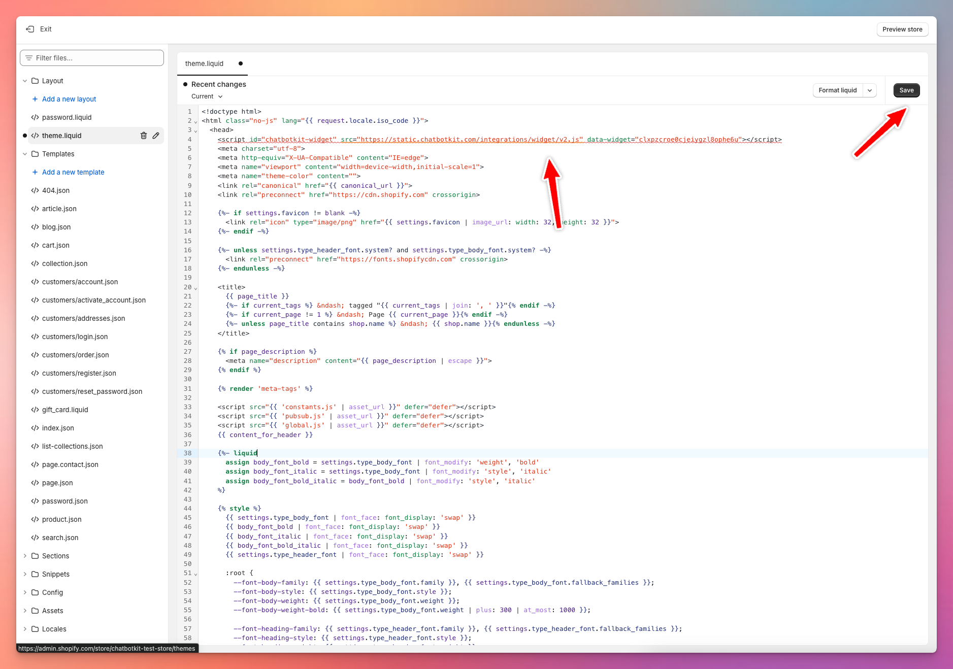If you are using ChatBotKit's widget integration, you might want to embed it directly on your Shopify Store. Fortunately, you can do this easily